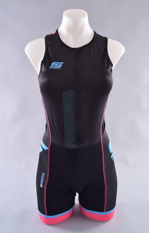 StageOne Pro Tri Suit Women's Medium Black Blue Sleeveless Triathlon