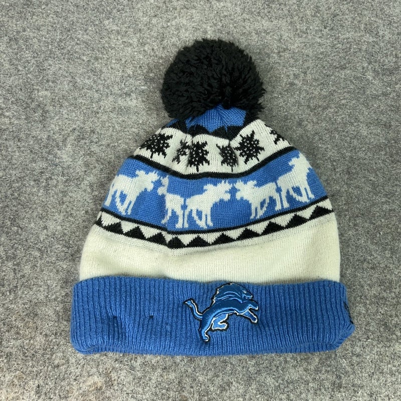 Detroit Lions Hat Cap Beanie Pom Blue White NFL Football Winter Knit New Era