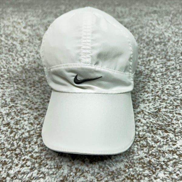 Nike Hat Cap Strap Back Mens One Size White Featherlight DRI-FIT Running Panel