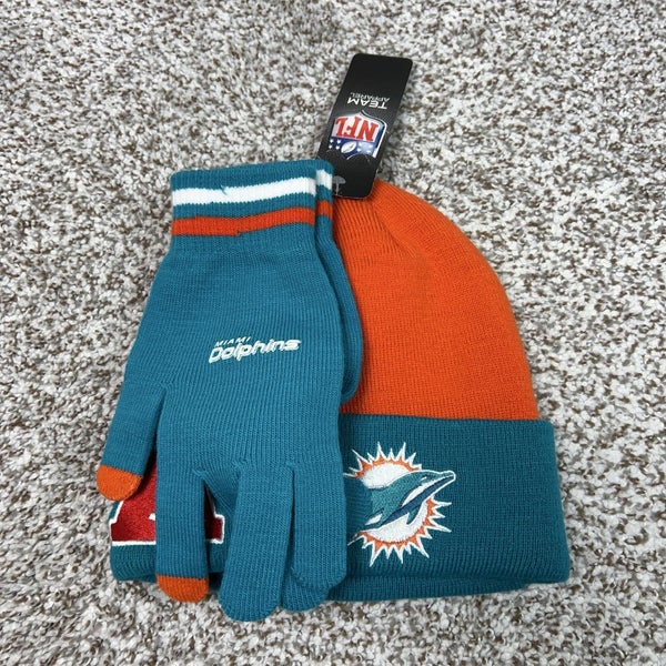Miami Dolphins Hat Beanie Mens One Size Aqua NFL Football Gloves Team Apparel