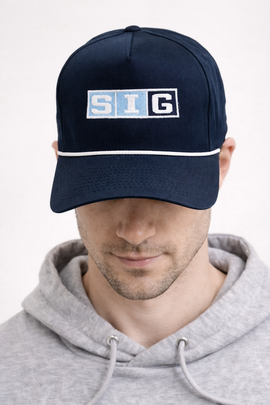 Navy/White Rope SIG Hockey Golf Snapback-Navy SIG Box Logo