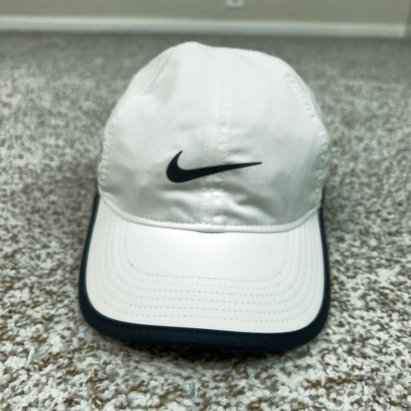 Nike Hat Cap Strap Back Mens One Size White Featherlight Dri-FIT Running Swoosh