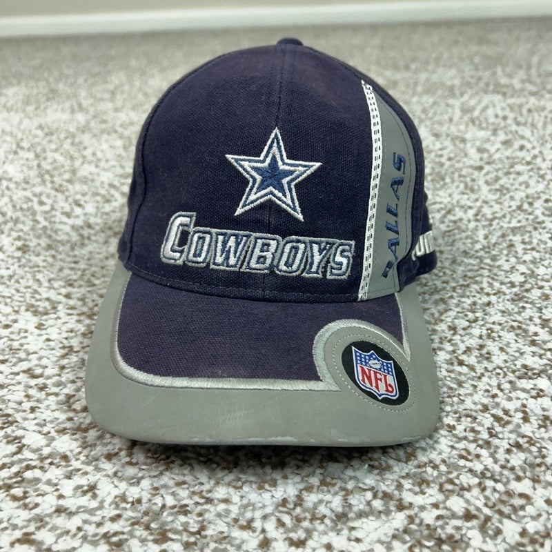 Material: Woven fabric crown and brim with embroidered eyelets, interior Cowboys star detail under the crown, and adjustable fabric strap back closure; made in Taiwan R.O.C.
