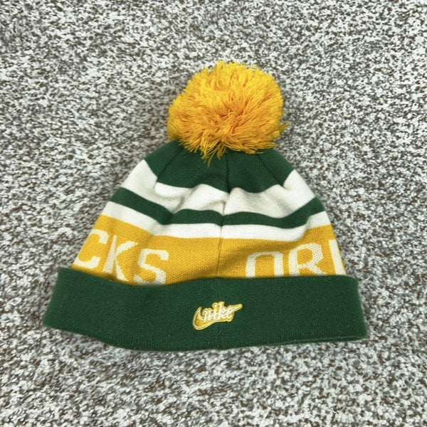 Oregon Ducks Hat Beanie Mens One Size Green Yellow NCAA Football Nike Pom Knit