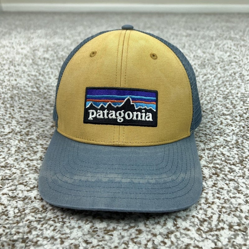 Patagonia Hat Cap Snap Back Mens One Size Blue Tan Mesh Trucker P-6 Logo Outdoor