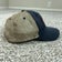 Color: Navy blue cotton twill front crown and brim with tan mesh back panels, rectangular embroidered Arizona Wildcats desert landscape patch at front, small embroidered Z logo at left side, and two-tone navy and tan plastic snap back closure at back.