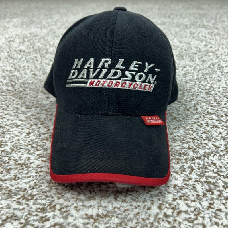 Harley Davidson Hat Cap Fitted Mens 7 1/8 Black Red Cotton Motorcycle Biker Logo