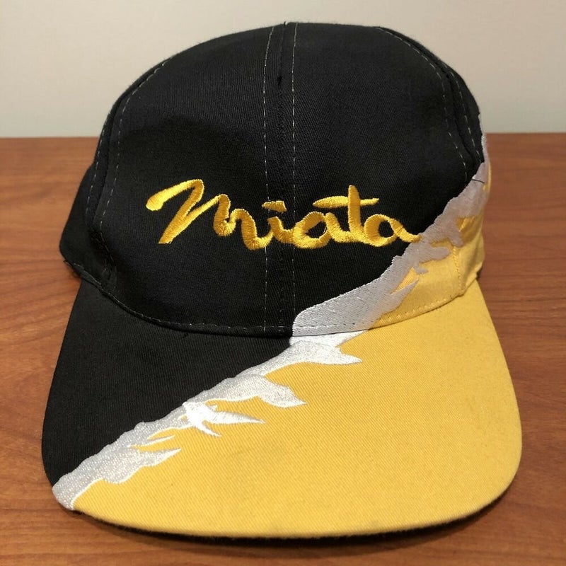 Miata Car Hat Baseball Cap Black Yellow Vintage 90s Retro Auto USA