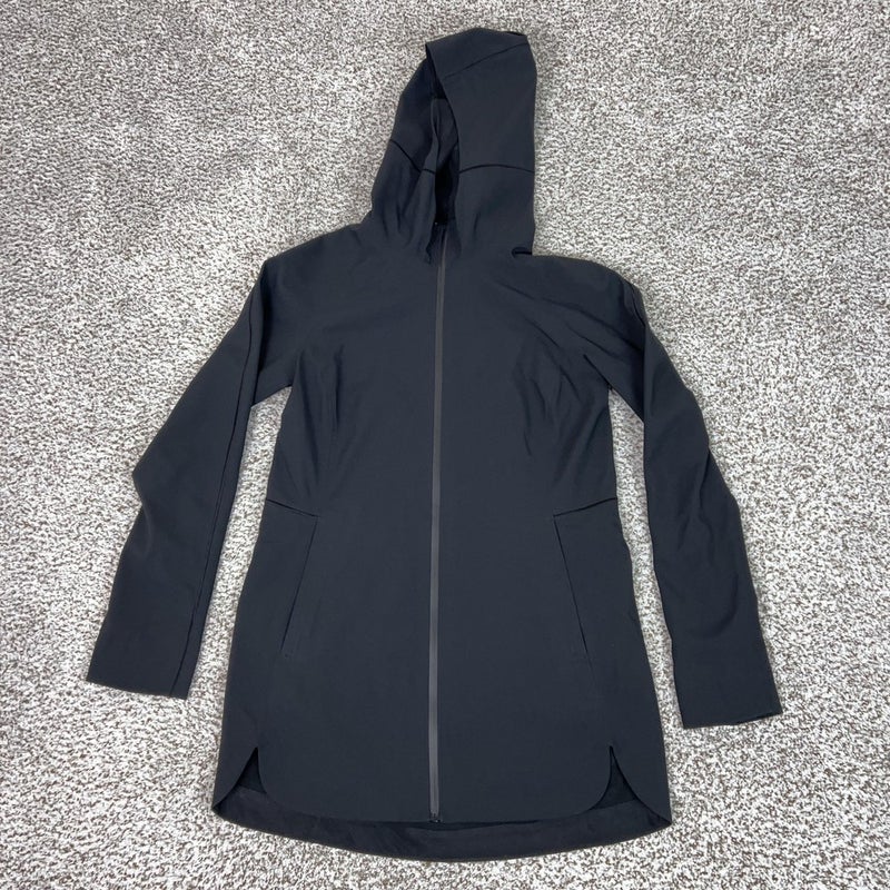 Lululemon Jacket Women 4 Black Hooded Long Glyde Along Softshell Water Resistant