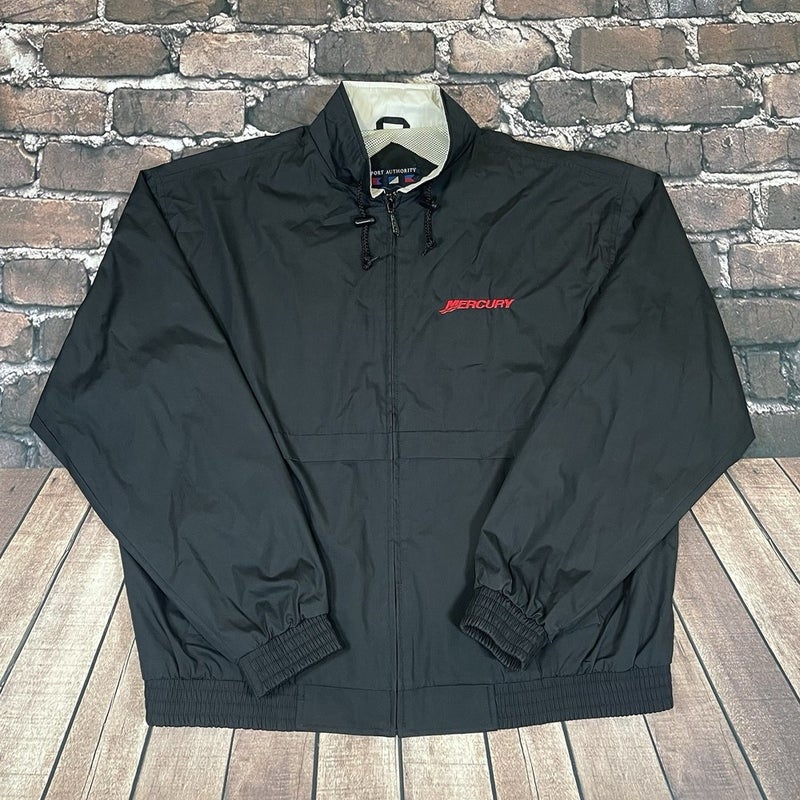 Vintage Mercury Outboards Boats Windbreaker Zip Jacket Size XL Black Rare