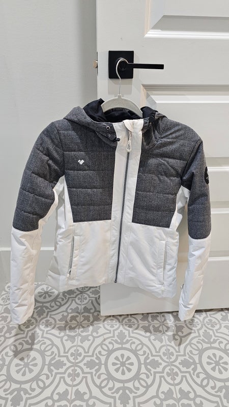 White/Charcoal Gray Women's Obermeyer Transverse Jacket Size 2, Like New