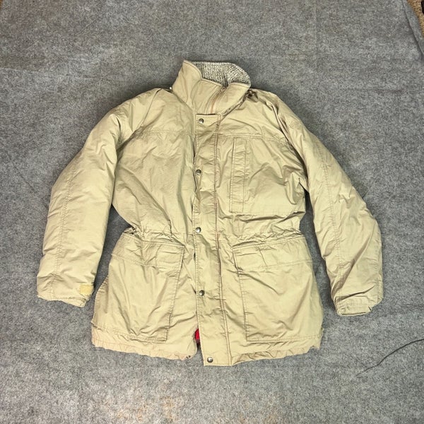 Vintage Woolrich Mens Jacket Medium Beige Puffer Blanket Lined Coat Down USA ^