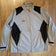Adidas ClimaProof gray and black windbreaker from the world famous Bandon Dunes Golf Resort. This jacket has two front zip pockets, a mesh lining, and adjustable velcro tabs at wrists. It is embroidered with the Bandon Trails logo on the right front chest. Pit to pit measures 24", back length 31". Excellent condition, smoke free home.