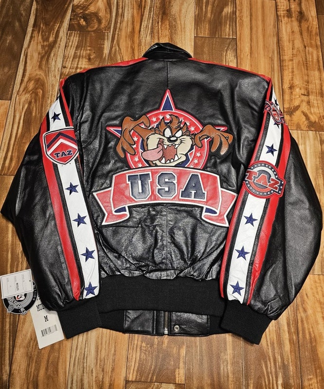 NEW Vintage Taz Tasmanian Devil Looney Toons 100% Leather Jacket Black Size Med