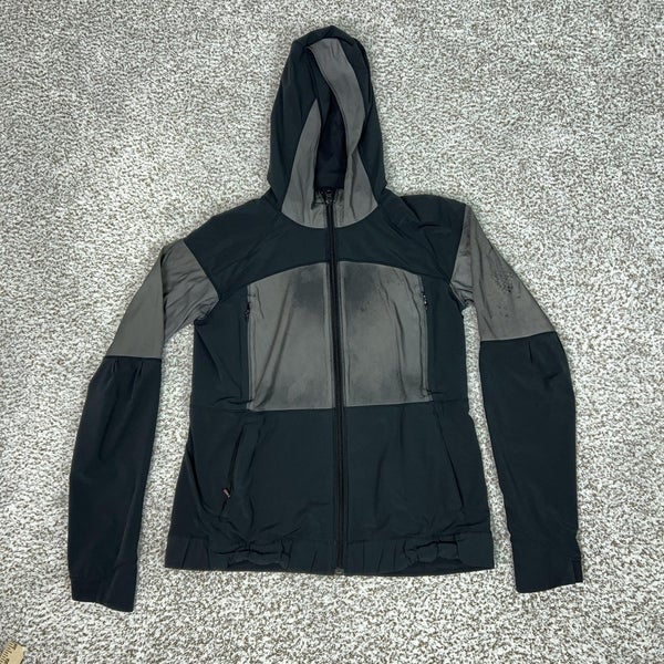 Lululemon Jacket Women 8 Black Gray Hooded Softshell Full Zip Running Reflective