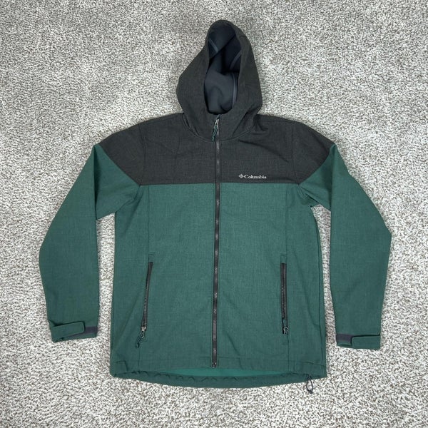 Columbia Jacket Mens Medium Green Gray Hooded Softshell Full Zip Outdoor Hiking