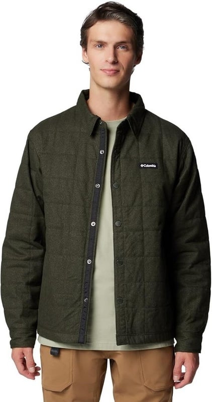 Columbia Landroamer Quilted Shirt Jacket Men's Green Spread Collar Cozy JAX767