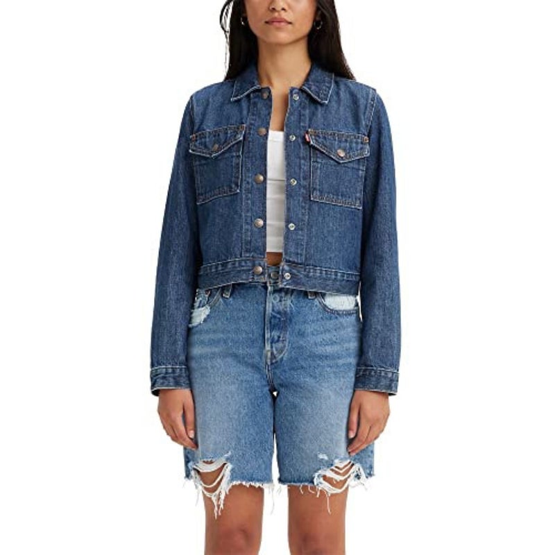 Levi's Original Trucker Jacket Womens Medium Blue Snap Button Front Crop GBO1735