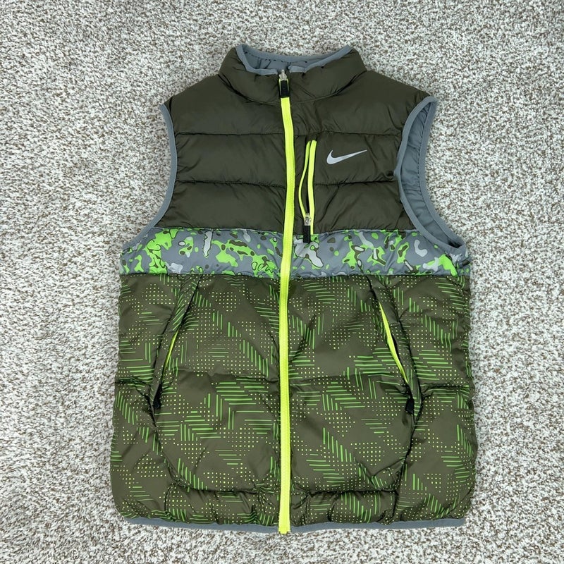 Nike Vest Mens XL Green Camo Gray Reversible Puffer Insulated Zip Outdoor Sports