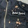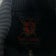 Color: Black outer shell with tan/orange paint-splatter style print, white Rebel Spirit logo script on the sleeve, and multicolor embroidery; white interior lining printed all over with Rebel Spirit crests, crowns, swords, and script.