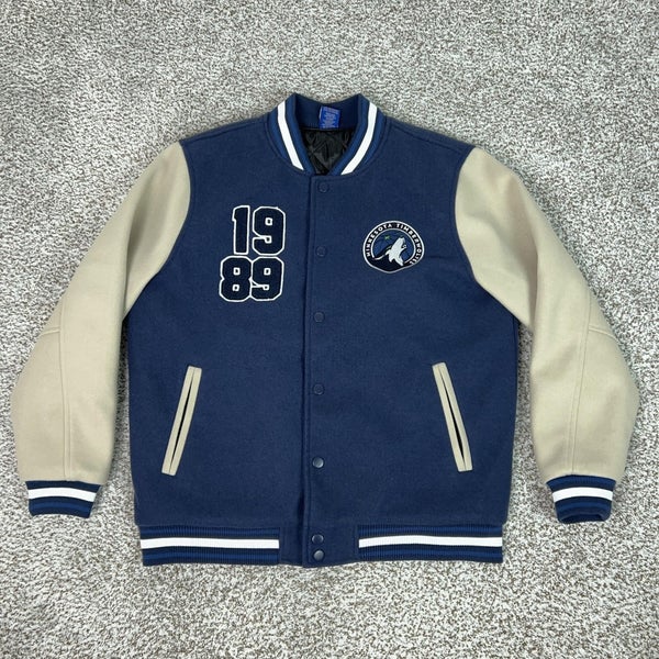 Minnesota Timberwolves Jacket Mens Large Blue NBA Basketball Bomber Varsity Logo