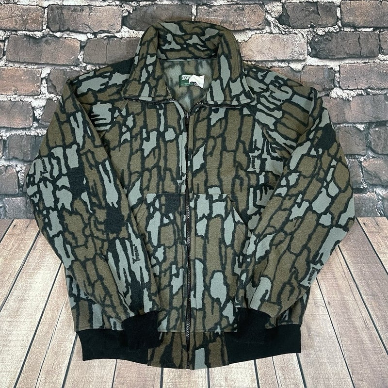 Vintage 90s SafTbak Trebark Camo Fleece Zip Jacket USA Made Hunting Mens Medium