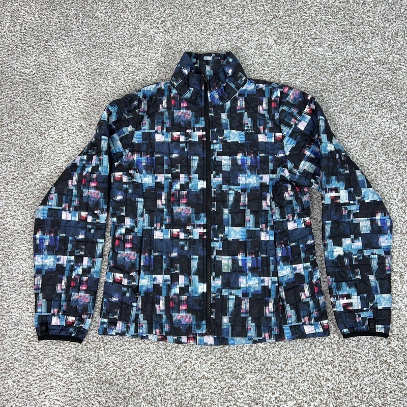North Face Jacket Womens Medium Blue Black Geometric Quilted Insulated Puffer