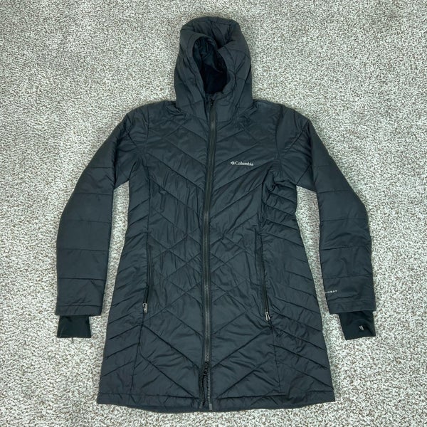 Columbia Jacket Womens Medium Black Long Omni Heat Hooded Insulated Puffer Coat