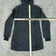 Pre-owned jacket with light overall wear and some wrinkling from storage. Outer shell shows a few faint surface marks and minor scuffs on the lower front panels. Fabric, lining, and insulation are intact without holes or tears; zippers, pockets, hood, and interior tags are present and functional.