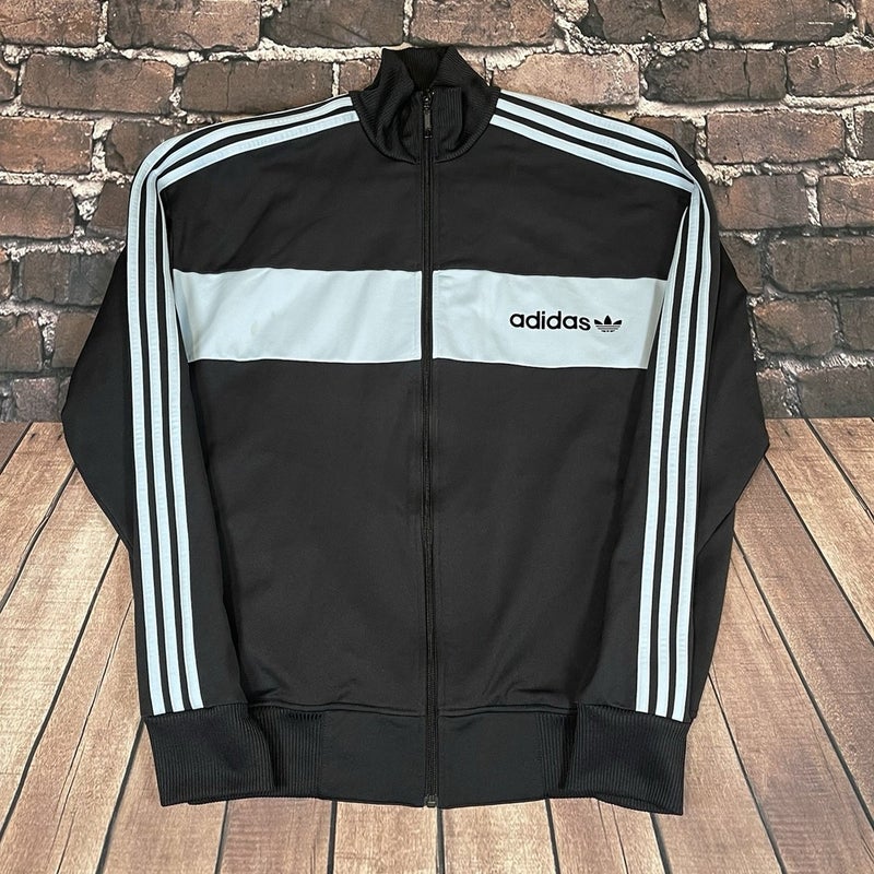 Adidas Trefoil Full Zip Track Jacket Black 3 Stripe Mens Size Large
