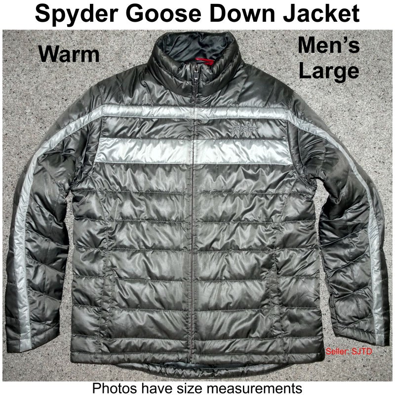 I try to detail any issues of an item that are noticed. There is a patch on the back and some minor marks (see photos). All zippers work. As is typical of a down jacket, feathers may come out of the shell. There may be some loose threads, marks or other wear that I have not noticed. Sold as-is, no returns. Please see photos, which are part of the listing description. Questions are invited.