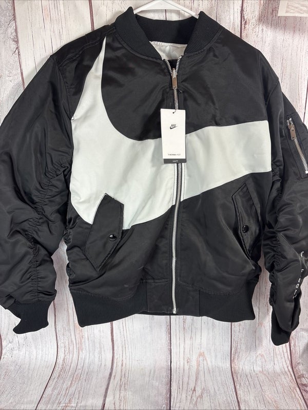 MEN'S NIKE SPORTSWEAR SWOOSH THERMA-FIT BOMBER BLACK JACKET DD6055-010 SIZE S