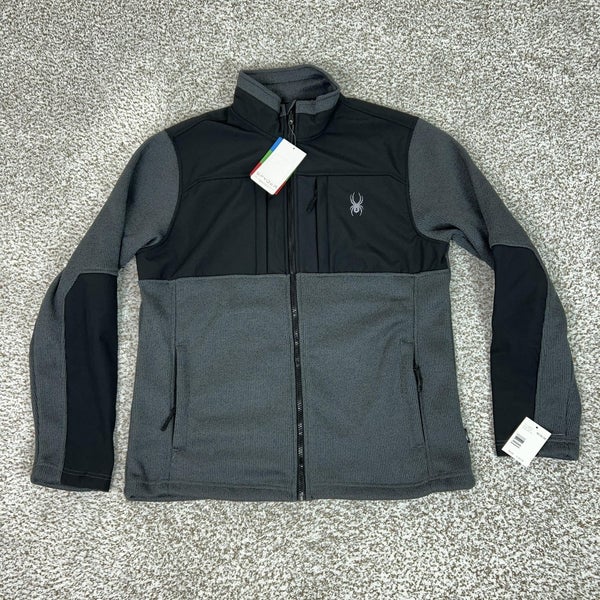 Spyder Jacket Mens Medium Gray Black Full Zip Fleece Core Sweater Ski Outdoor