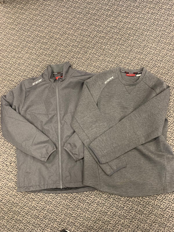 CCM Grey Midweight Jacket & Locker Crewneck Adult Medium
