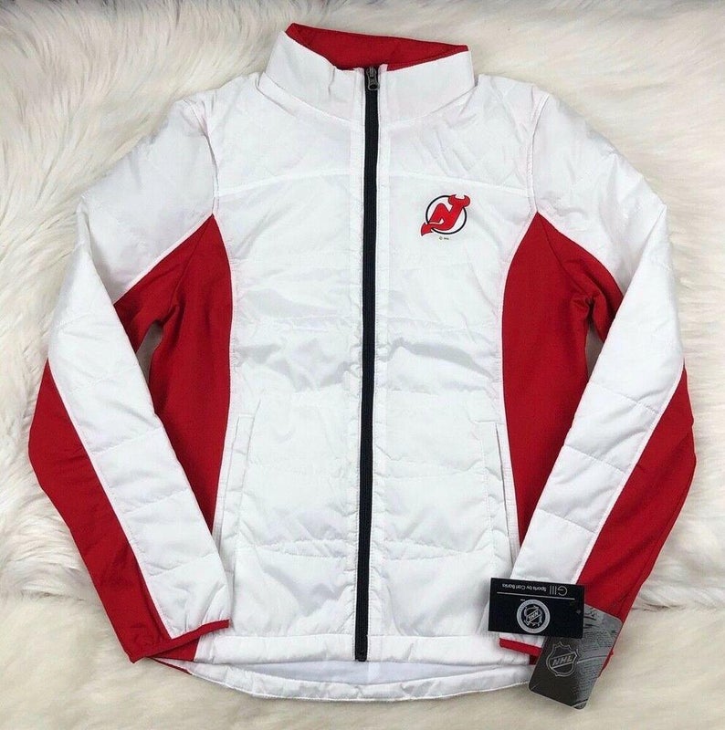 New Jersey Devils Full Zip Quilted Puffer Jacket, White, Women's S, NHL G-III