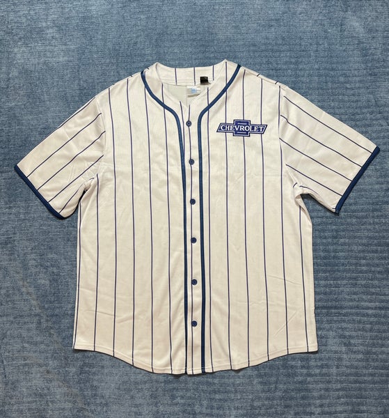 Official GM Chevrolet Racing Baseball Jersey White Blue Pinstripes Size XL NEW