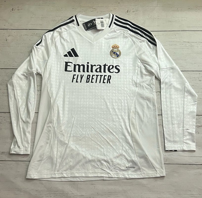 Adidas Real Madrid 2024/2025 Men’s Long Sleeve Jersey White Size Large Slim Fit