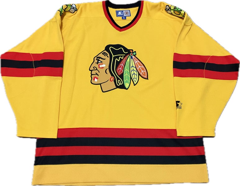 Chicago Blackhawks Blank Yellow Fashion Jersey Starter NHL Hockey Jersey Size XL