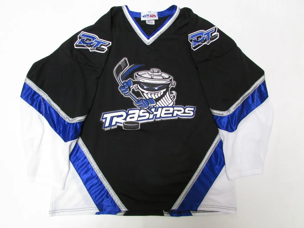 Danbury Trashers Black AK UHL Authentic Hockey Jersey – Large, Fight Strap