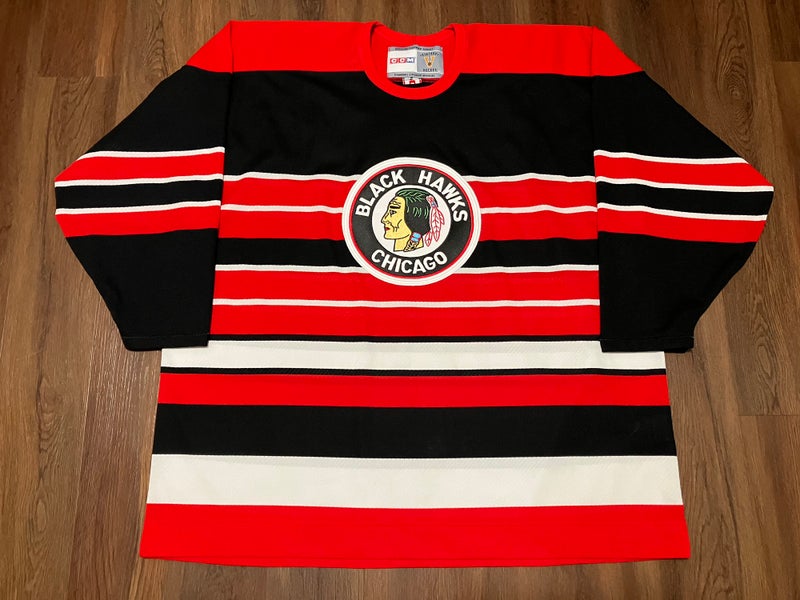 Chicago Blackhawks Chris Chelios Barber Pole CCM NHL Hockey Jersey Size JUMBO