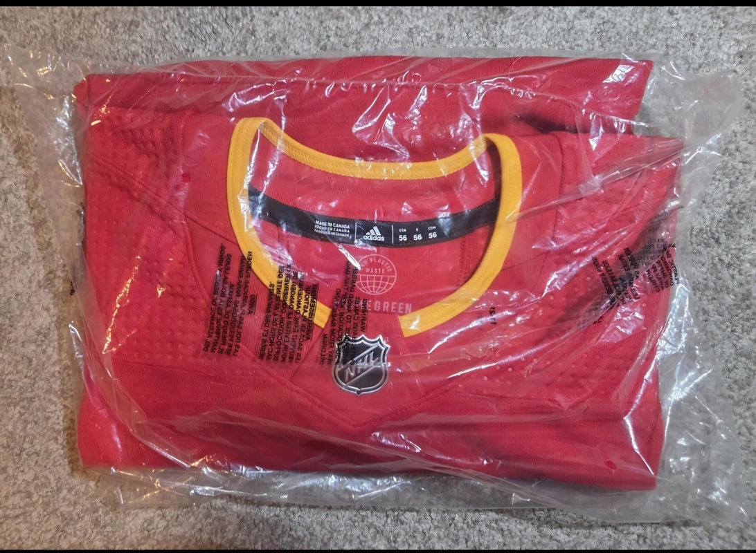 NIB Calgary Flames Adidas Primegreen MiC Team Issued Home Pro Stock Hockey Jersey Size 56