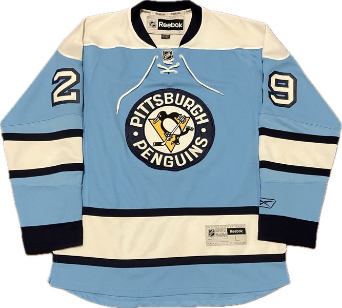 Pittsburgh Penguins Marc Andre Fleury Baby Blue Alternate Reebok NHL Hockey Jersey Size L