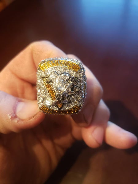 Crosby replica stanley cup ring. Says back to back on the one side other has Crosby on it. Inside has the 4 series of took to win the cup size 13