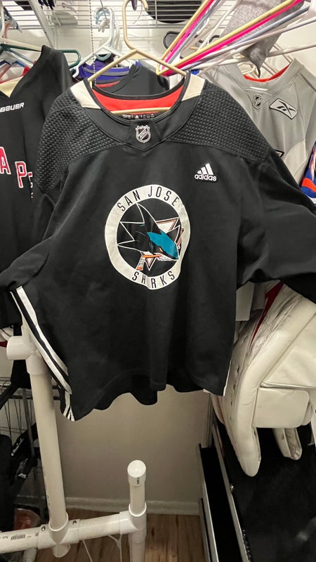 Black Used Goalie Cut Adidas Sharks Pro Stock Jersey