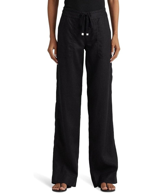 Lauren Ralph Lauren Pants Women's 2 Black 100% Linen Drawstring Wide-Leg RED1095