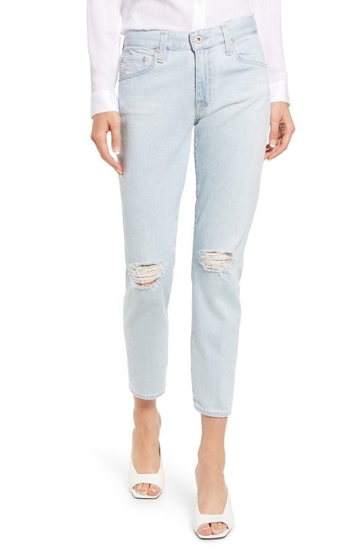 AG Jeans Ex-Boyfriend Women's 30 Blue Denim Distressed Straight Leg Crop JZZ339