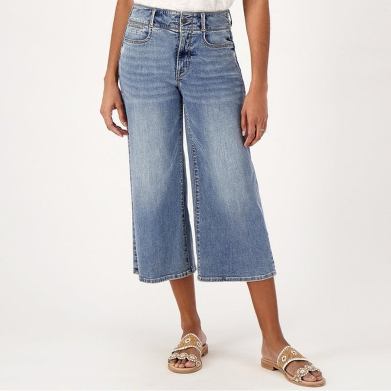 NYDJ HR Major Capri Jeans Women 4 Blue Denim Medium Wash Wide Leg Zip-Fly JZZ697