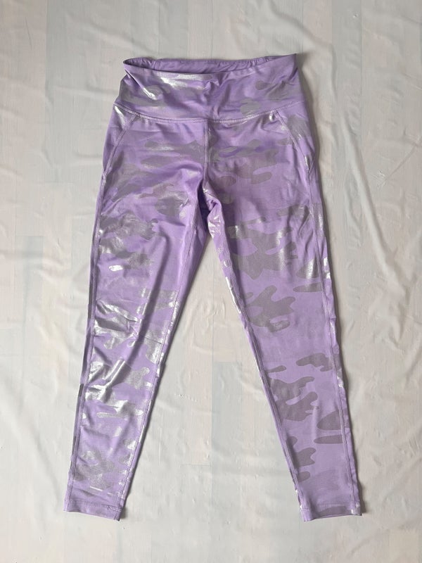 Refuge Lavender camo leggings metallic shiny back zip pocket Junior girl's L