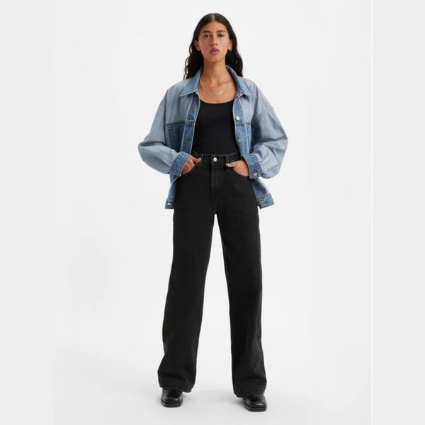 Levi's Premium Ribcage A6081-0001 Jeans Women's 25X32 Black Wide Leg KFC595