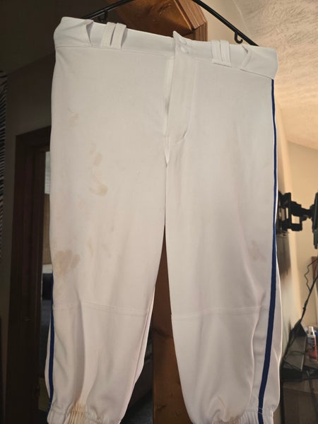 White baseball pants with blue piping midlinks.Size youth extra large.